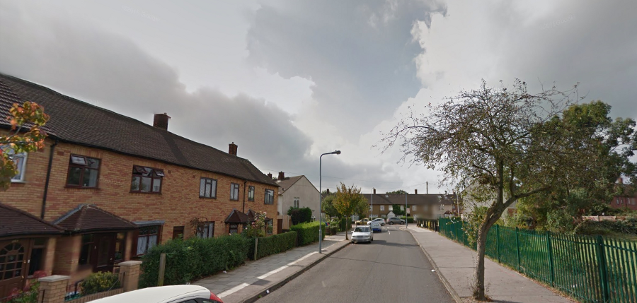 © Google – Sept 2014 – 223 Huntsman Road near Gardens of Peace cemetery – Ilford, England