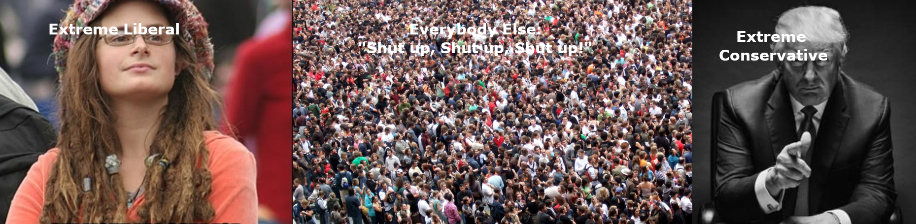 I think the vast majority of us, regardless of social and political affiliation, are in the middle group who just wants the nutbars on the extreme left and extreme right to put a cork in the collective pieholes. However, on twitter, it’s not easy to detect the folks in the middle because, most of the time, they aren’t the ones rabidly attacking everyone else.