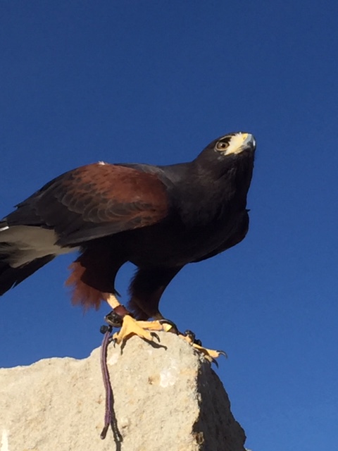 The birds flew barely an inch or more above your head at times, and one actually perch itself on a man’s head (fortunately, he was wearing a hat, because a raptors talons are unforgiving). The trainer recalled the bird very quickly, so the fellow was okay.