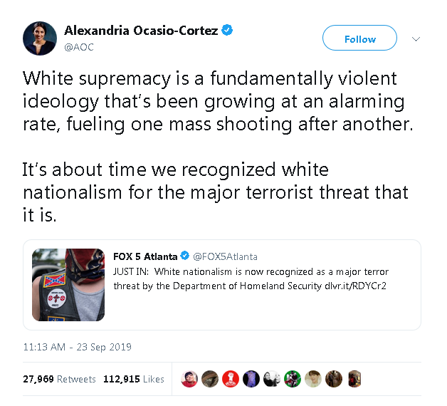 It’s not just in popular entertainment, either. It’s in politics: https://twitter.com/AOC/status/1176197906778525696