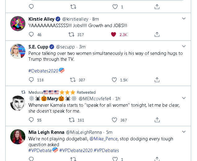 I’m not watching the debate tonight. In fact, I was planning on going to bed before this whole twitter thing since I have to be at the brick and mortar office tomorrow morning. It does seem though that depending on your politics, you either think Pence is winning or Harris. Obviously, I can’t tell. After watching Trump and Biden go at it last week, I decided I didn’t need that again, although I’m surprised to hear that Pence isn’t a lot calmer. I didn’t expect him to try and talk over Harris, but then again, only some people believe he is.