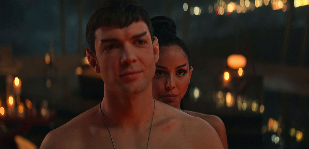 Cut to Vulcan and a nice, scenic dinner between Spock (Ethan Peck) and T’Pring (Gia Sandhu) in a very posh restaurant. They are having the most formal conversation I’ve ever heard between two Vulcans in multiple Star Trek series and quite a few movies. Frankly, it was ridiculous. However, T’Pring manages to propose marriage to Spock who apparently accepts.