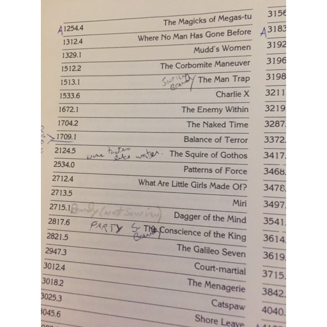 Anyway, it has a list of episodes presented in stardate order. Episodes were originally aired in a different order in which they were filmed, so Roddenberry thought of a lot of fake physics for why the stardates were out of order (the stardates for the 1970s animated series are listed, so disregard them).