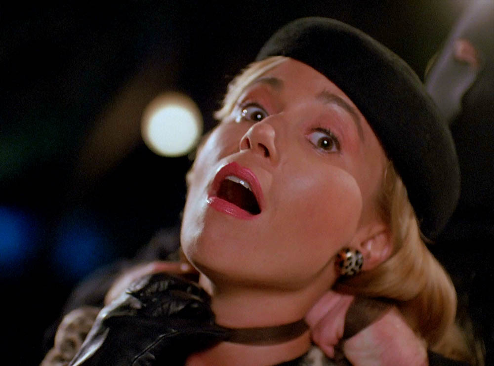 Alas, as Sam enters Ross’ apartment building, he passes a neighbor, a French woman played by Hilla Mol (no character name given) on her way out to walk her dogs. Shortly afterward, we see she is strangled by the killer in the park. I guess Ziggy wasn’t particularly concerned about saving her life.