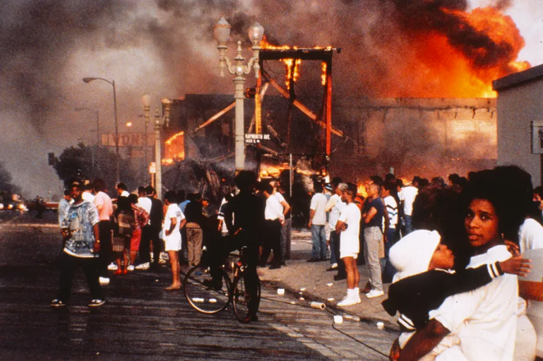 The image below is not from the television show but rather a photo taken during the actual 1992 Los Angeles riots. Here’s some perspective.