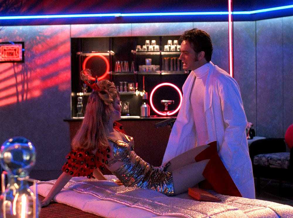 Scene from the original Quantum Leap episode “Killin’ Time” featuring (L-R) Carolyn Lowery as “Hooker” and Cameron Dye as Stiles. Notice the “futuristic” decor of the room and Stiles’ “Fermi suit.”