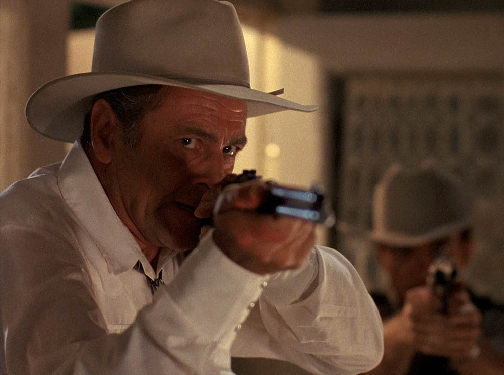 Scene from the original Quantum Leap episode “Killin’ Time” featuring Jim Haynie as Sheriff Hoyt with Joseph Malone as Deputy Grimes in the background.