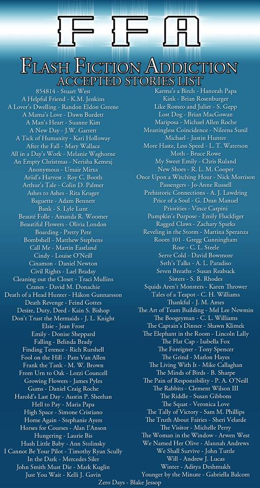 The folks at Zombie Pirate Publishing produced 101 promotional images, one for each story/author in the Flash Fiction Addiction. This one’s mine.
