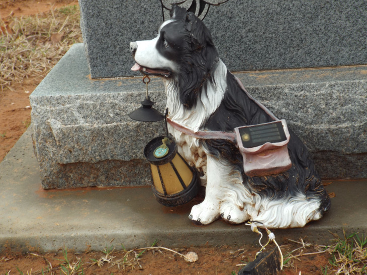 Given that this is the Memorial Day weekend in the U.S., and seeing the prompt was a photo of a dog and a headstone, I thought it fitting to pay homage to the dogs who have served our country. My tale is a fictionalized version of the events in the news story Michigan bomb-sniffing war dog gets military funeral. On August 24, 2017, Cena was buried with full military honors at a cemetery in South Lyon, Michigan. You can click the link to get all the details, but it’s very touching.