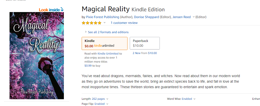 For a limited time only, the Kindle edition of the Pixie Forest Publishing fantasy anthology Magical Reality, featuring my short story “The Dragon’s Family” is available for $2.99 USD or free with Kindle Unlimited. Don’t miss out.