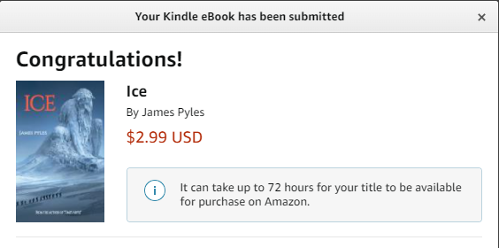 I have exactly one book that is self-published on Amazon; Ice. My short description blurb says:
